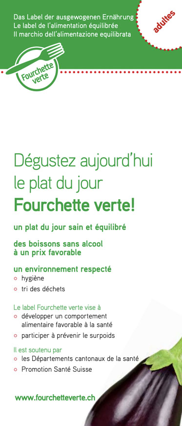 Les labels Fourchette verte et Fourchette verte - Ama terra "adulte" favorisent une alimentation équilibrée et durable pour les adultes dans les Hautes écoles, universités, cafétérias et restaurants d’entreprise, restaurants privés,…