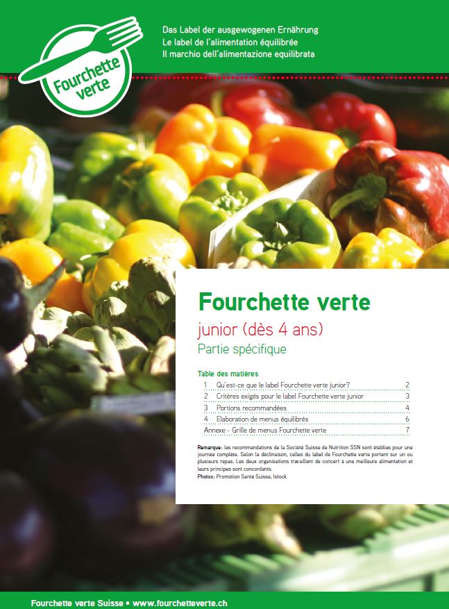 Les critères nutritionnels des labels Fourchette verte et Fourchette verte - Ama terra sont basés sur les recommandations officielles de l’Office fédéral de la sécurité alimentaire et des affaires vétérinaires (OSAV) et de la Société Suisse de Nutrition (SSN).